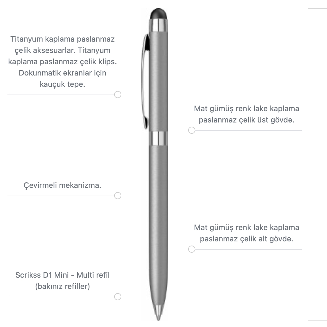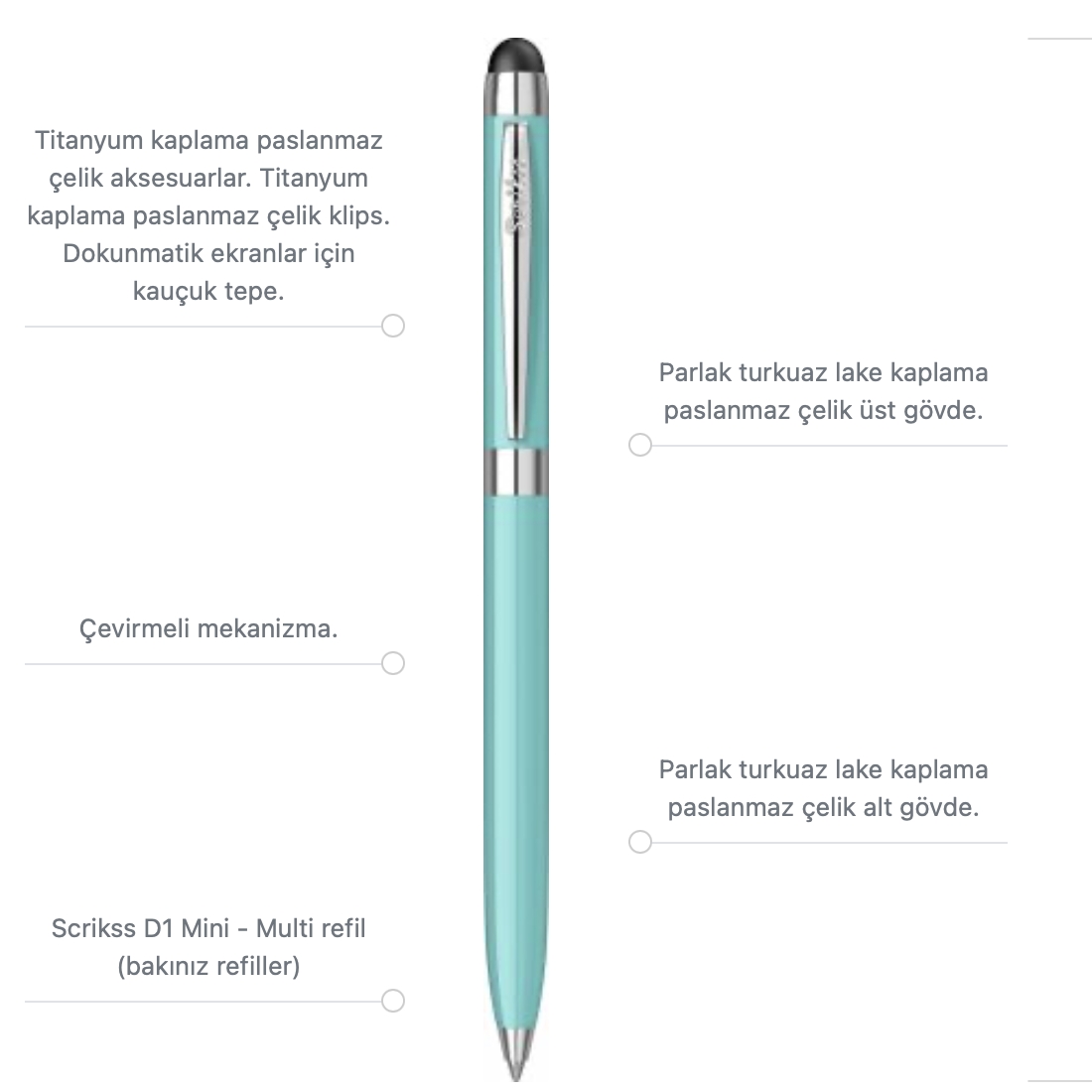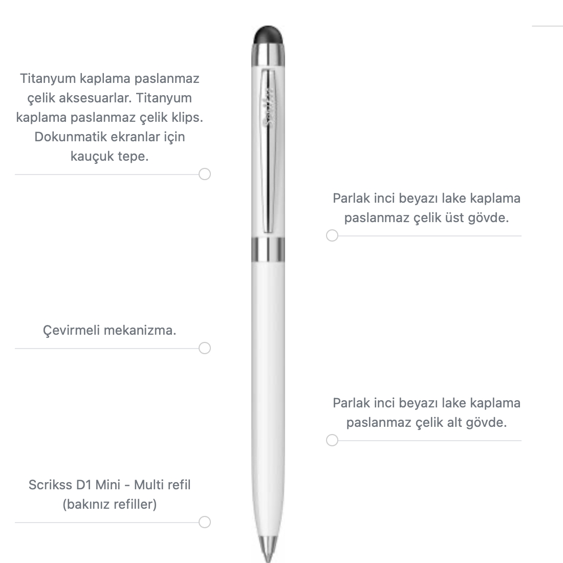 Scrikss Tükenmez Kalem Stylus Mini Touch Pen 799
